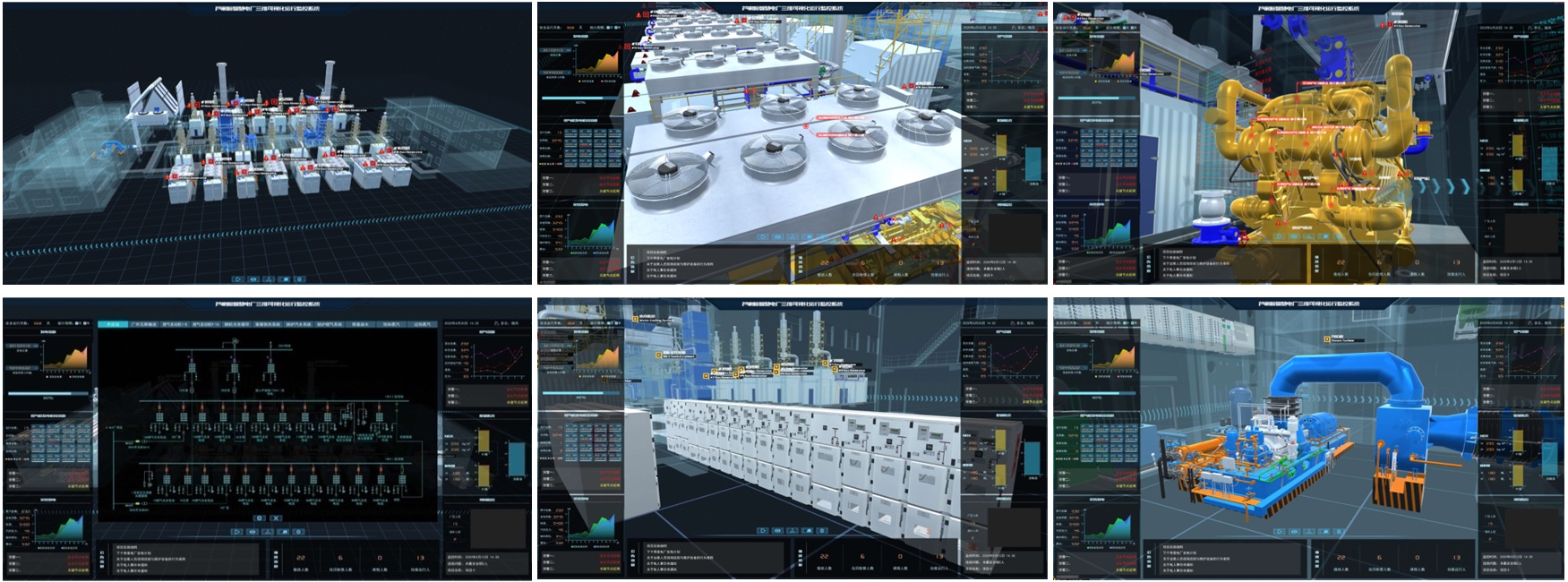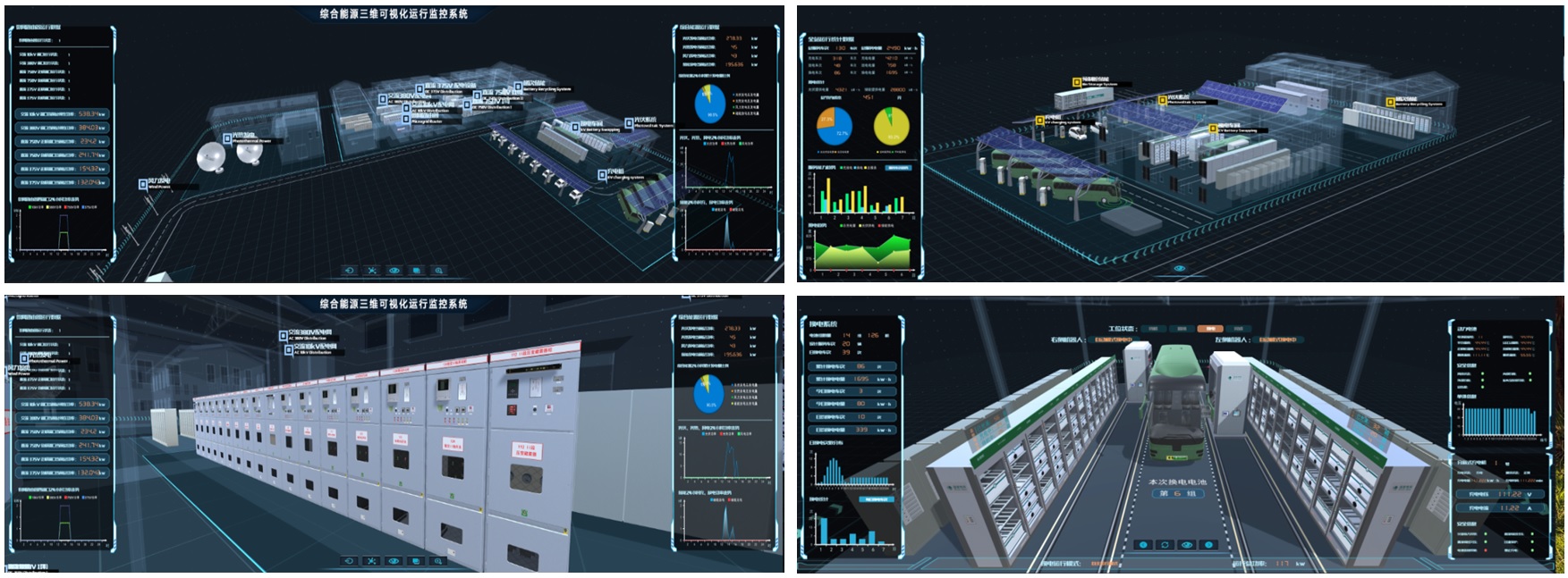 數(shù)字孿生系統(tǒng)為電網(wǎng)、能源行業(yè)提供電力實(shí)時(shí)監(jiān)視數(shù)據(jù)的動(dòng)態(tài)直觀呈現(xiàn)、核心設(shè)備的內(nèi)外部結(jié)構(gòu)動(dòng)態(tài)三維展示以及電網(wǎng)設(shè)備的互動(dòng)模擬。并對(duì)系統(tǒng)運(yùn)行狀態(tài)進(jìn)行實(shí)時(shí)監(jiān)視,同時(shí)對(duì)系統(tǒng)性能指標(biāo)進(jìn)行同步刷新,采用圖形化表達(dá)方式對(duì)主要數(shù)據(jù)進(jìn)行展現(xiàn),實(shí)現(xiàn)數(shù)據(jù)信息的遠(yuǎn)程直觀動(dòng)態(tài)呈現(xiàn)及系統(tǒng)間的信息互動(dòng),形成一個(gè)信息共享的展示平臺(tái),體現(xiàn)三維可視化監(jiān)視區(qū)域內(nèi)的各個(gè)系統(tǒng)之間的關(guān)系,充分滿足系統(tǒng)遠(yuǎn)端監(jiān)控與智能運(yùn)維的可視化需求。采用三維虛擬仿真技術(shù)、虛擬互動(dòng)技術(shù)、三維建模技術(shù)、實(shí)時(shí)數(shù)據(jù)采集技術(shù)、可組態(tài)圖表技術(shù)等,基于大屏幕互動(dòng)顯示技術(shù),對(duì)電網(wǎng)內(nèi)的多種能源形式、電網(wǎng)設(shè)備等進(jìn)行詳細(xì)業(yè)務(wù)分析,并將新技術(shù)、新設(shè)備的優(yōu)異性能數(shù)據(jù)等在三維可視化系統(tǒng)中突出展現(xiàn)。全方位展示能源、電網(wǎng)、負(fù)荷之間的關(guān)系。系統(tǒng)的三維場(chǎng)景和操作界面設(shè)計(jì)以絕佳視覺展現(xiàn)效果為目標(biāo),依托大屏幕顯示技術(shù),身臨其境的三維可視化展示與智能巡視等操作體驗(yàn)。